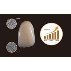 Amber Mill Direct obtient une translucidité naturelle en appliquant une microstructure graduée,des régions cervicales aux régions incisives/occlusales, sans caractérisation supplémentaire.