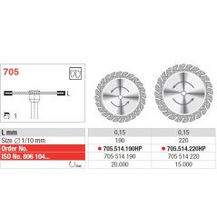 Disque cranté en grain diamanté fin, pour séparer les céramiques, le plâtre, les acryliques et les résines pour incrustations.