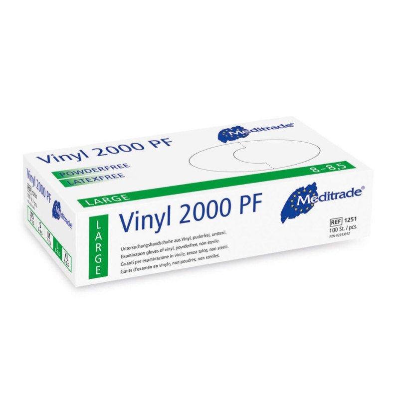 - 1 x paquet de gants Vinyl 2000 PF de Meditrade à 100 pièces dans la taille choisi