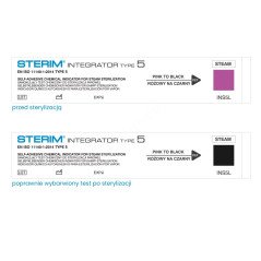 La bandelette de test doit être placée dans l'emballage à stériliser. À la fin du processus, vérifiez la couleur du champ de test sur la bandelette. La confirmation de la réalisation des conditions de stérilisation requises est un changement de couleur du champ de test - du rose au noir.